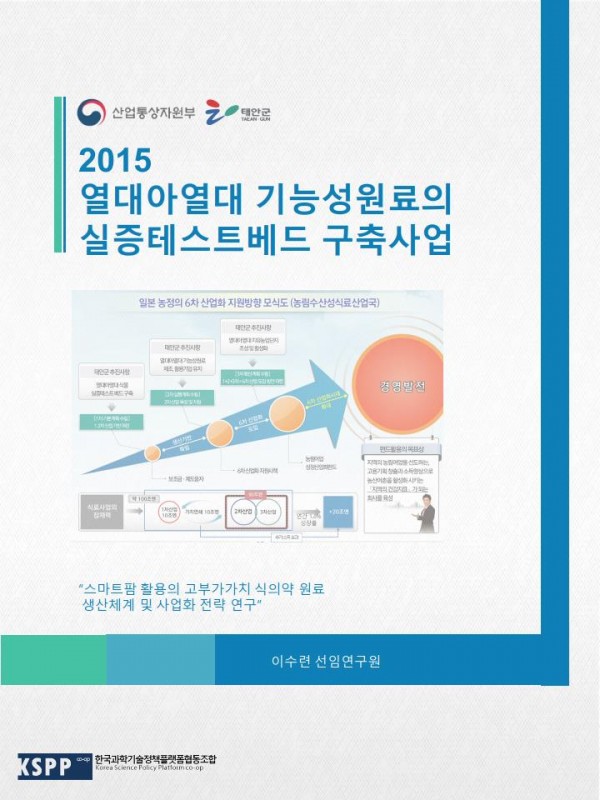 2015 열대아열대 기능성원료의 실증테스트베드 구축사업 관련링크 페이지 정보 작성일20-02-19 18:51 조회5,167회 본문 스마트팜 활용의 고부가가치 식의약 원료 생산체계 및 사업화 전략 연구 이전글 목록